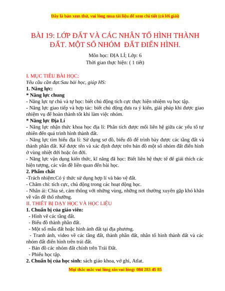 BÀI 19: LỚP ĐẤT VÀ CÁC NHÂN TỐ HÌNH THÀNH