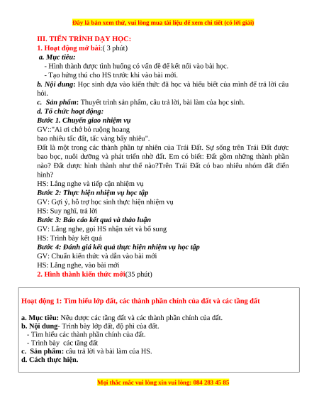 Nhiệm vụ 1:Tìm hiểu lớp đất.