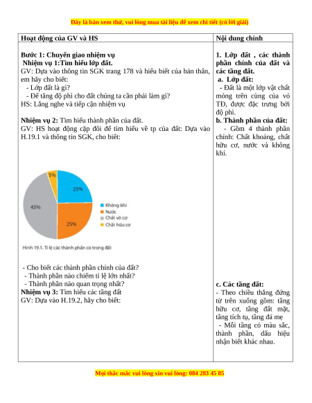 a. Mục tiêu: Nêu được các tầng đất và các thành phần chính của đất.