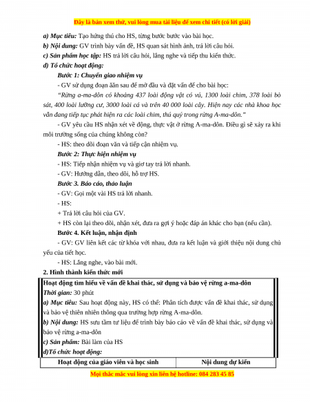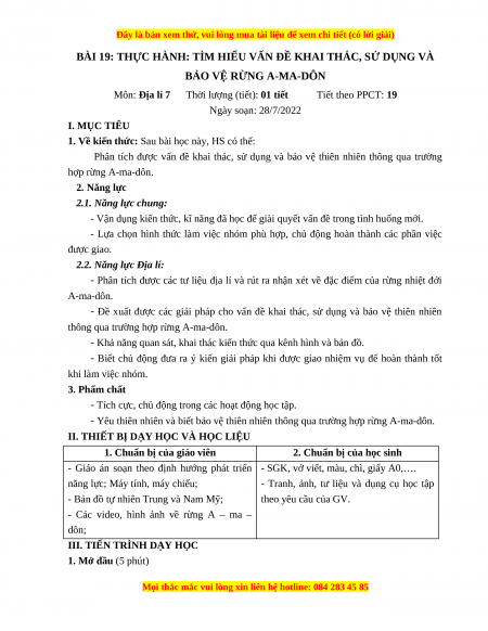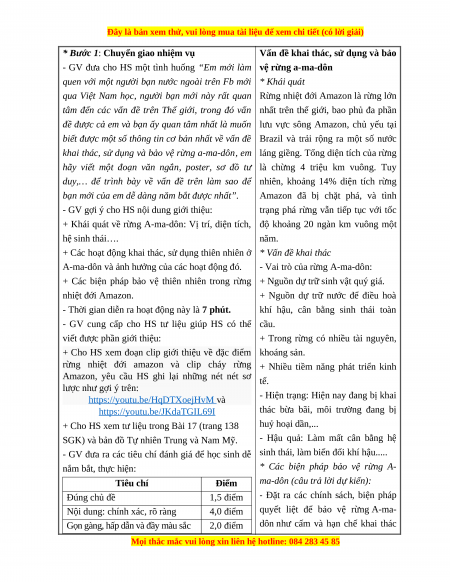 Phân tích được vấn đề khai thác, sử dụng và bảo vệ thiên nhiên thông qua trường hợp rừng A-ma-dôn. 2. Năng lực