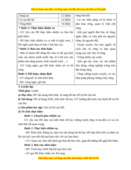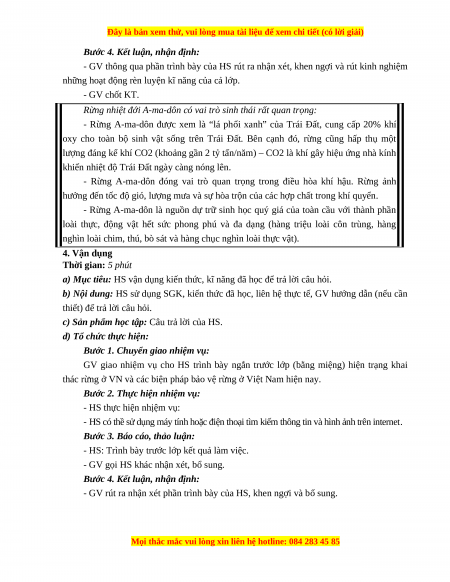 - Yêu thiên nhiên và biết bảo vệ thiên nhiên thông qua trường hợp rừng A-ma-dôn.