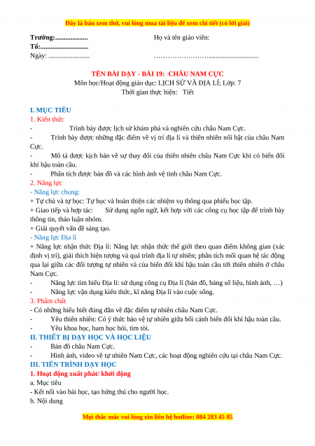 TÊN BÀI DẠY - BÀI 19: CHÂU NAM CỰC
