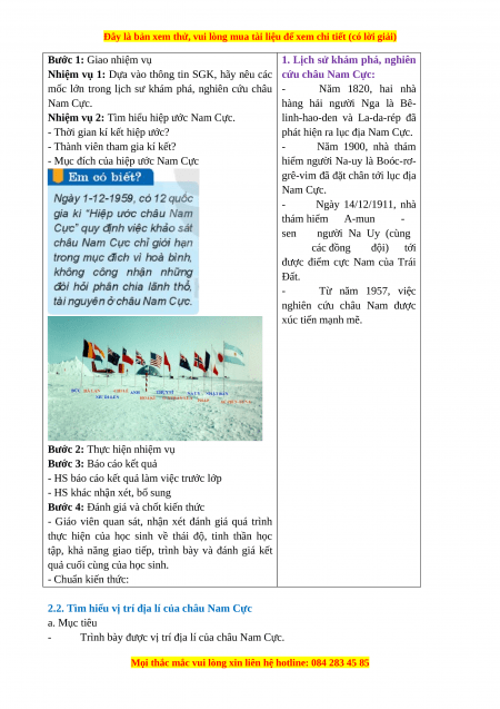 Trình bày được lịch sử khám phá và nghiên cứu châu Nam Cực b. Nội dung