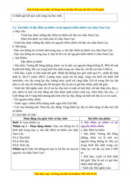 - Phân tích được các hình ảnh về châu Nam Cực.