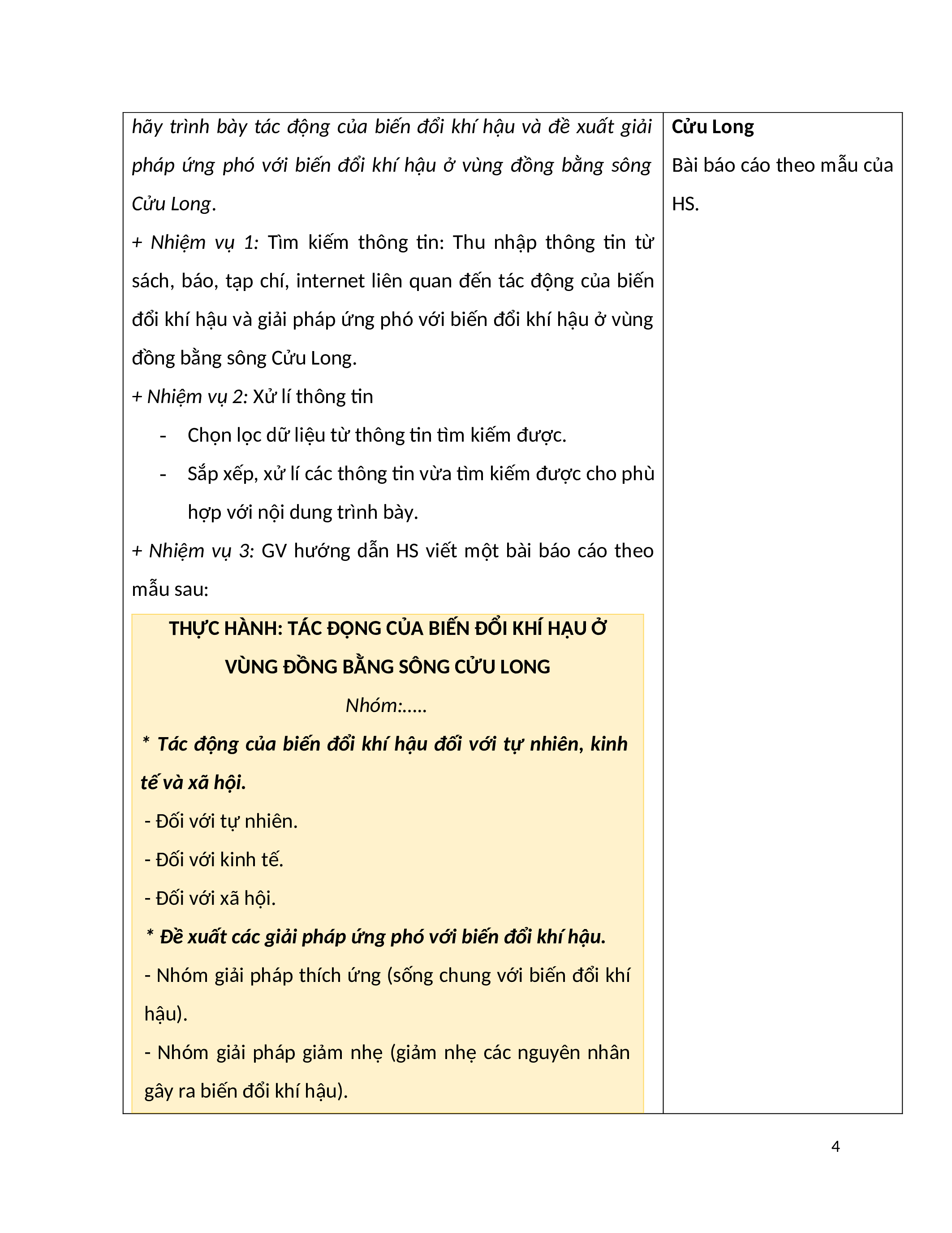 pháp ứng phó với biến đổi khí hậu ở vùng đồng bằng sông Bài báo cáo theo mẫu của Cửu Long. HS.