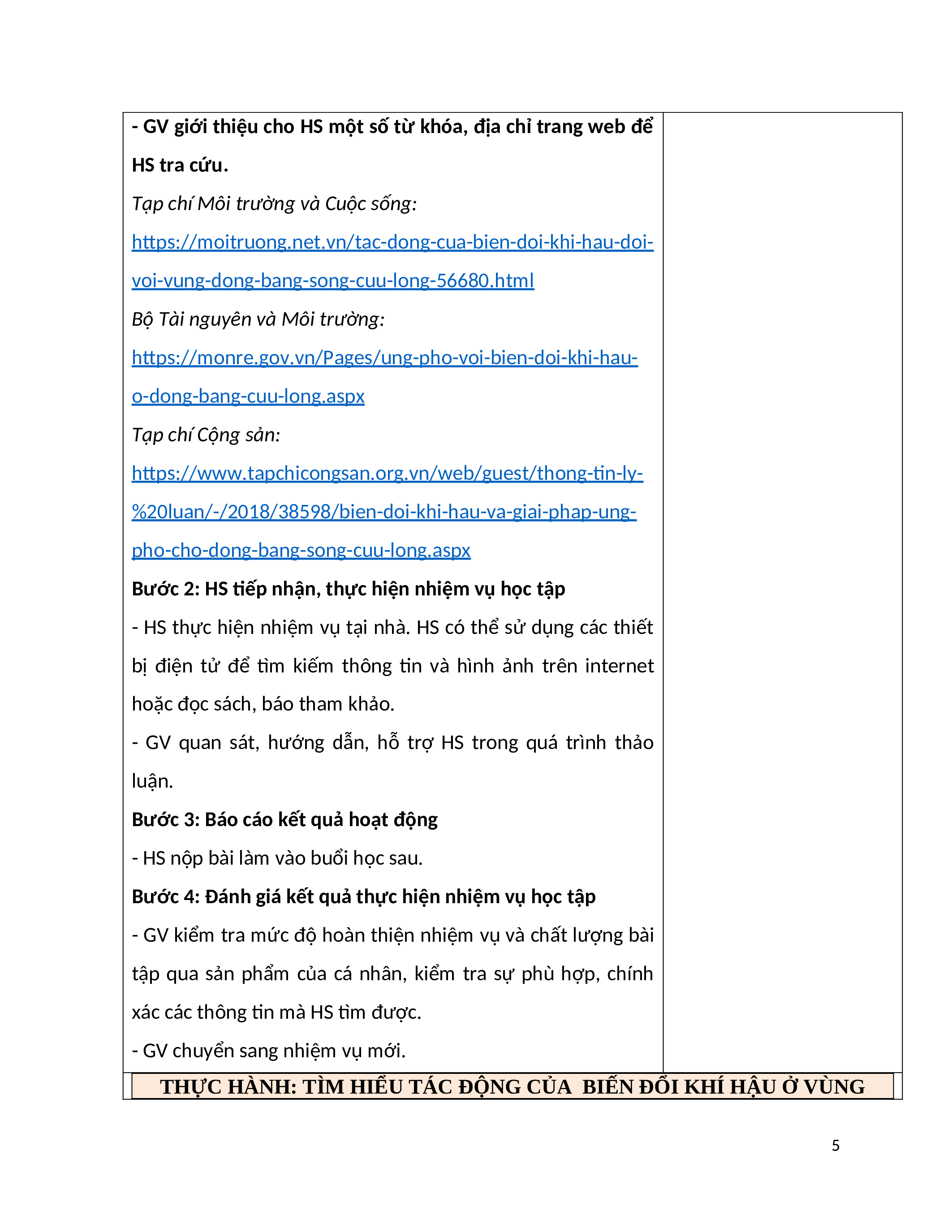 tạp chí, internet để thấy được tác động của biến đổi khí hậu đến vùng Đồng bằng sông Cửu Long. -