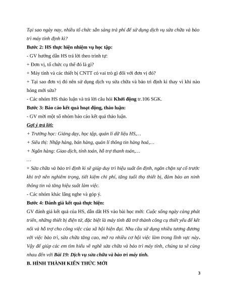 Giáo án Bài 19: Dịch vụ sửa chữa và bảo trì máy tính Tin học 12 Kết nối tri thức