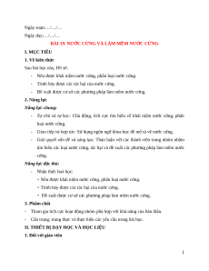 BÀI 19. NƯỚC CỨNG VÀ LÀM MỀM NƯỚC CỨNG I. MỤC TIÊU 1. Về kiến thức Sau bài học này, HS sẽ: