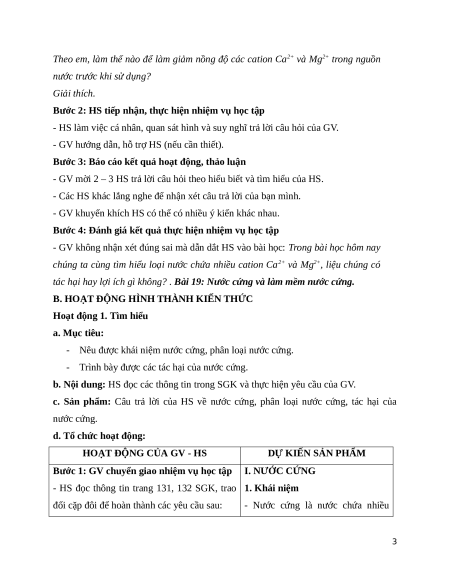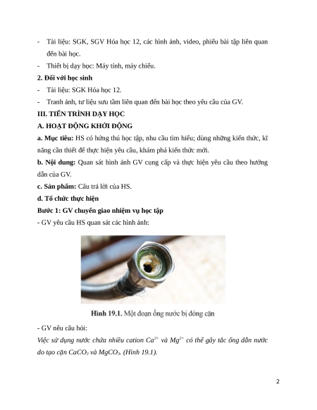 Giáo án Bài 19 Hóa học 12 Cánh Diều: Nước cứng và làm mềm nước cứng
