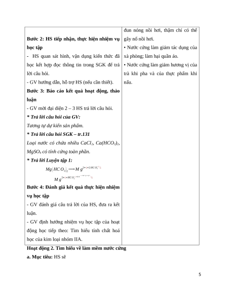 - Giao tiếp và hợp tác: Sử dụng ngôn ngữ khoa học để mô tả về nước cứng.