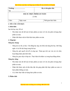 BÀI 19: THỰC PHẨM AN TOÀN (2 tiết) Tuần: Ngày soạn: Thời gian thực hiện: