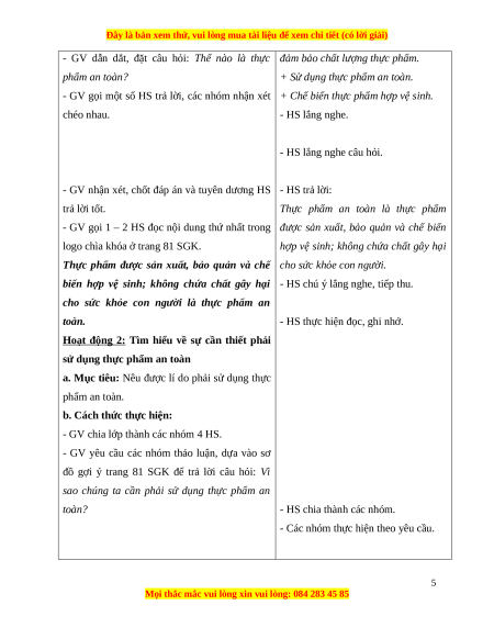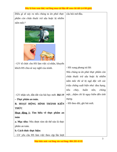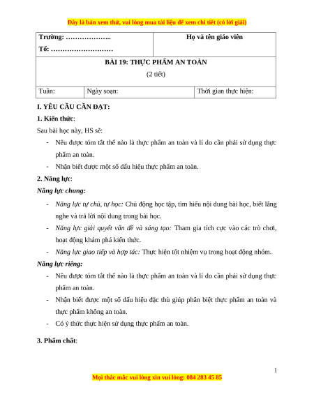- Có ý thức thực hiện sử dụng thực phẩm an toàn. 3. Phẩm chất: 1