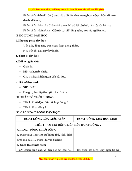 - Tiết 1: Khởi động đến hết hoạt động 2. - Tiết 2: Hoạt động 3.