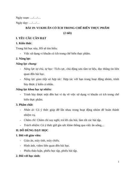 - Việc sử dụng vi khuẩn có ích trong chế biến thực phẩm. 2. Năng lực: