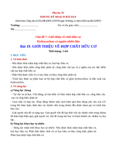 Giáo án Bài 19 Khoa học tự nhiên 9 Cánh Diều (2024): Giới thiệu về chất hữu cơ