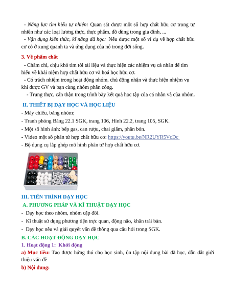 - Năng lực tìm hiểu tự nhiên: Quan sát được một số hợp chất hữu cơ trong tự