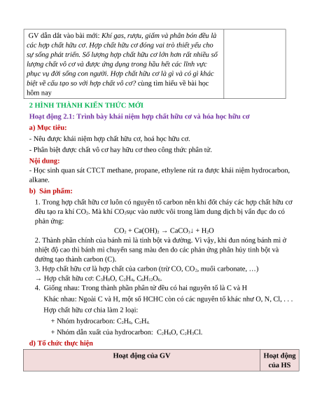 - Trình bày được sự phân loại sơ bộ hợp chất hữu cơ gồm hydrocarbon và dẫn xuất của hydrocarbon. 2. Về năng lực a) Năng lực chung