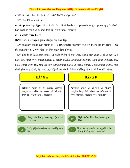 điện thoại, điện tín. Sau đó hãy sắp xếp các hành vi vào 2 bảng A, B sao cho đúng. Hết