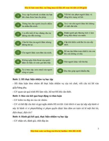 - Nhận biết được hậu quả của hành vi vi phạm quyền được bảo đảm an toàn và bí