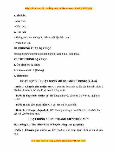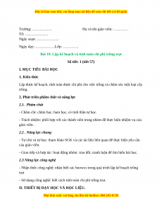 - Nhận thức công nghệ: nhận biết các buowcs trong quá trình lập kế hoạch trồng trọt