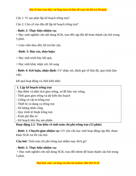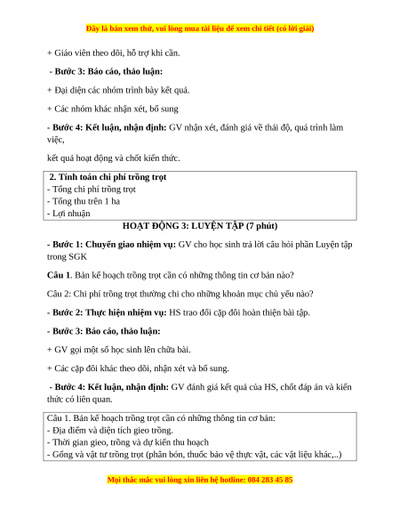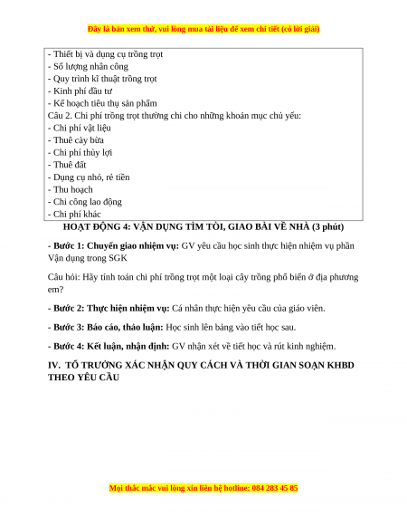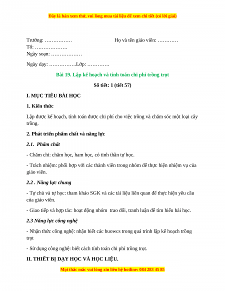Giáo án Bài 19: Lập kế hoạch và tính toán chi phí trồng trọt Công nghệ 10 Cánh diều