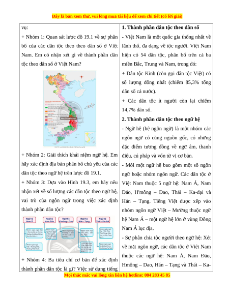 - Nêu được thành phần các dân tộc theo dân số. Trình bày được khái niệm ngữ hệ và