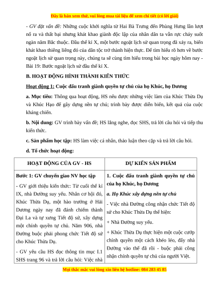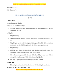 BÀI 19: BƯỚC NGOẶT LỊCH SỬ ĐẦU THẾ KỈ X (2 tiết) I. MỤC TIÊU