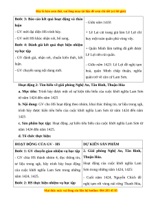 - GV hướng dẫn, theo dõi, hỗ trợ HS nếu cần tại căn cứ Lam Sơn (Thanh Hoá) và tự thiết.