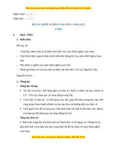 BÀI 19: KHỞI NGHĨA LAM SƠN ( 1418-1427) (1 tiết) I. MỤC TIÊU 1. Kiến thức HS học về: