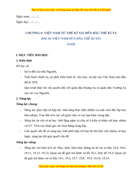 BÀI 19: VIỆT NAM NỬA ĐẦU THẾ KỈ XIX (4 tiết)