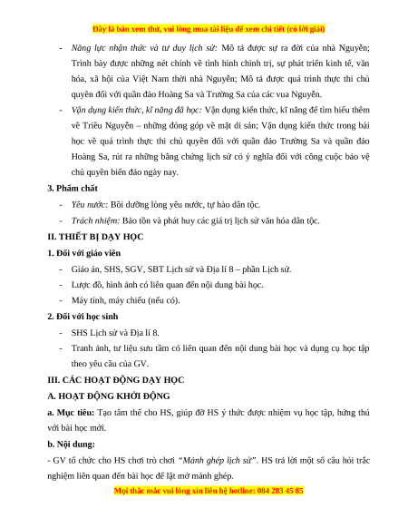 - Giáo án, SHS, SGV, SBT Lịch sử và Địa lí 8 – phần Lịch sử.