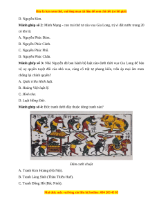 Mảnh ghép số 1: Ai đã đánh bại Triều Tây Sơn, lập ra Triều Nguyễn? A. Nguyễn Phúc Nguyên. B. Nguyễn Hoàng. C. Nguyễn Ánh.