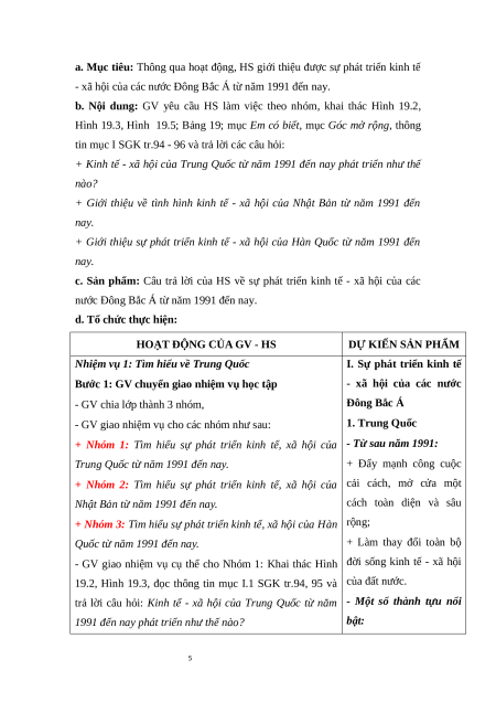 - Nhận thức và tư duy lịch sử: Giới thiệu được sự phát triển kinh tế - xã