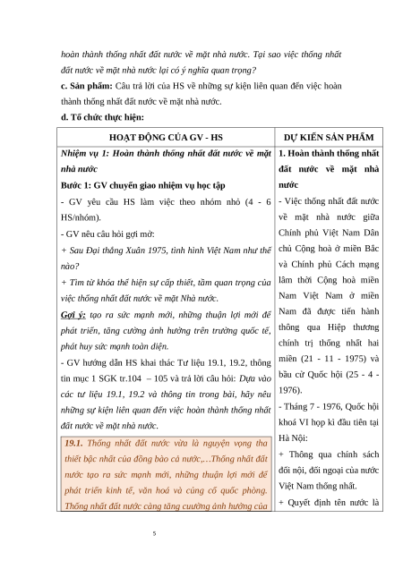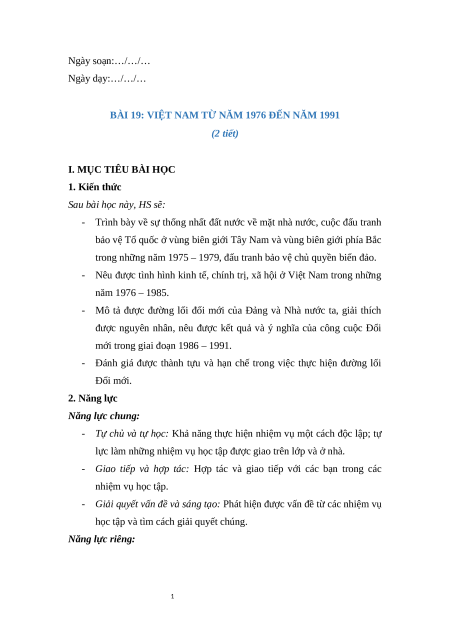 Giáo án Bài 19 Lịch sử 9 Chân trời sáng tạo: Việt Nam từ năm 1976 đến năm 1991
