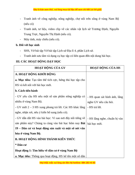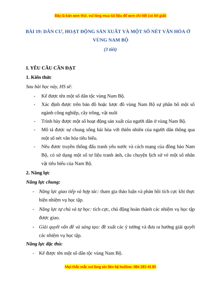 BÀI 19: DÂN CƯ, HOẠT ĐỘNG SẢN XUẤT VÀ MỘT SỐ NÉT VĂN HÓA Ở VÙNG NAM BỘ (3 tiết)