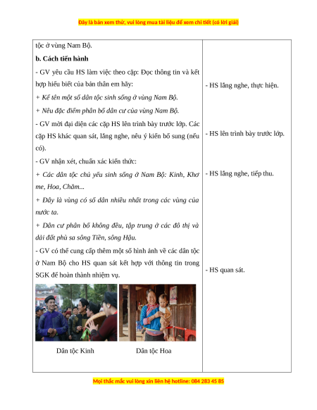 tộc ở vùng Nam Bộ. b. Cách tiến hành