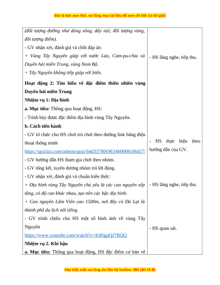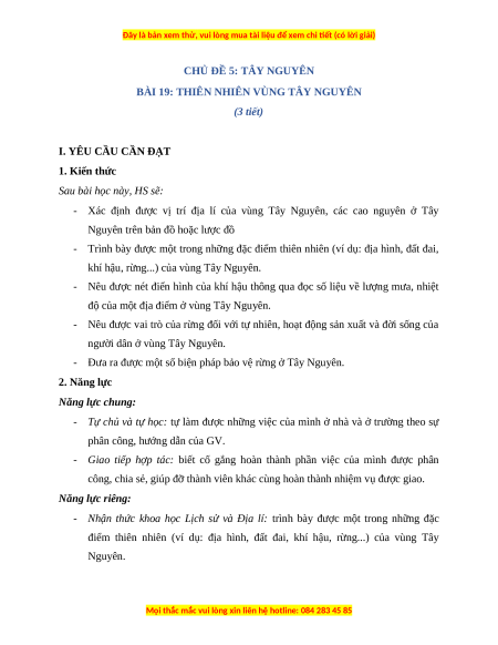 BÀI 19: THIÊN NHIÊN VÙNG TÂY NGUYÊN (3 tiết)