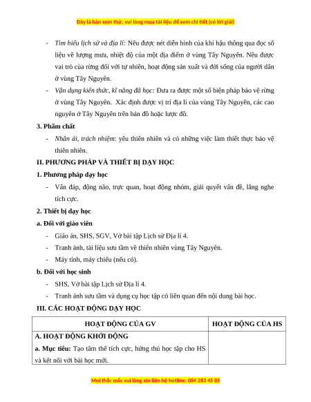 nguyên ở Tây Nguyên trên bản đồ hoặc lược đồ. 3. Phẩm chất