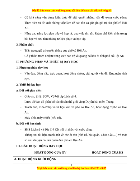 - Đề xuất được một số biện pháp (ở mức độ đơn giản) để bảo tồn và giữ gìn giá trị của phố cổ Hội An. 2. Năng lực Năng lực chung: