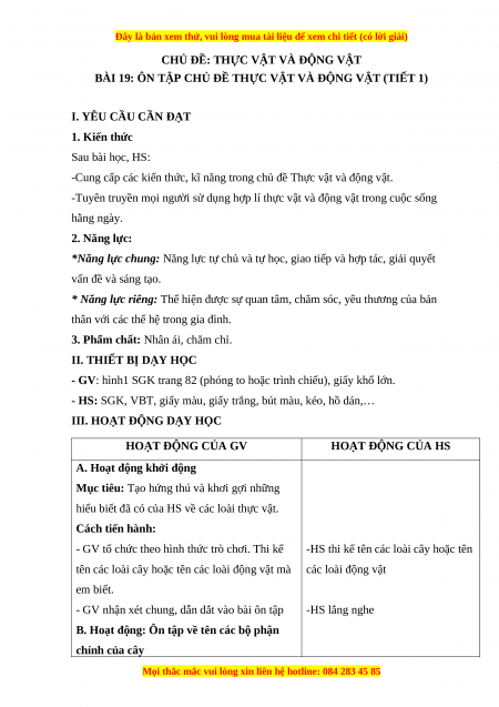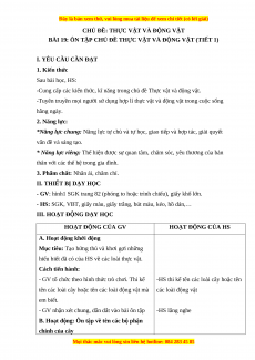 BÀI 19: ÔN TẬP CHỦ ĐỀ THỰC VẬT VÀ ĐỘNG VẬT (TIẾT 1)