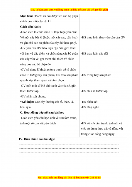 -Cung cấp các kiến thức, kĩ năng trong chủ đề Thực vật và động vật.