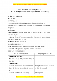 BÀI 19: ÔN TẬP CHỦ ĐỀ THỰC VẬT VÀ ĐỘNG VẬT (TIẾT 2)