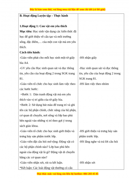 sống, đặc điểm,… của một con vật mà em yêu thích. Cách tiến hành: