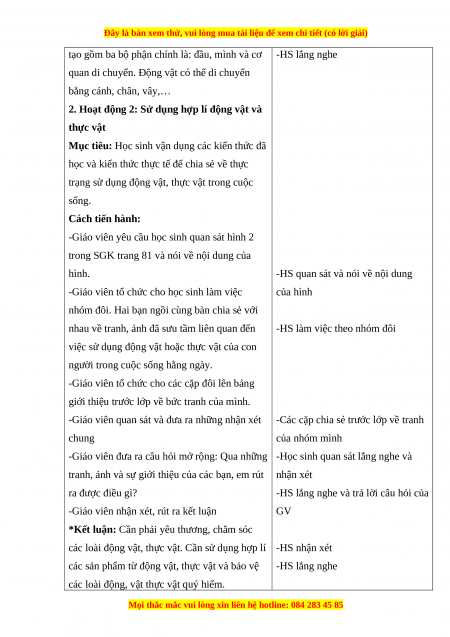 -Tuyên truyền mọi người sử dụng hợp lí thực vật và động vật trong cuộc sống hằng ngày. 2. Năng lực: