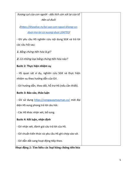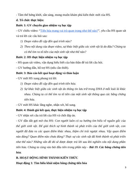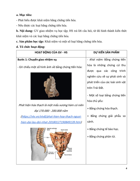 Hoạt động 1: Tìm hiểu khái niệm bằng chứng tiến hóa 3 a. Mục tiêu: