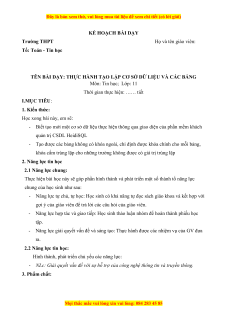 TÊN BÀI DẠY: THỰC HÀNH TẠO LẬP CƠ SỞ DỮ LIỆU VÀ CÁC BẢNG Môn: Tin học; Lớp: 11