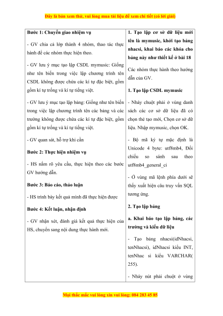 - HS nắm rõ yêu cầu, thực hiện theo các bước utf8mb4_general_ci GV hướng dẫn.