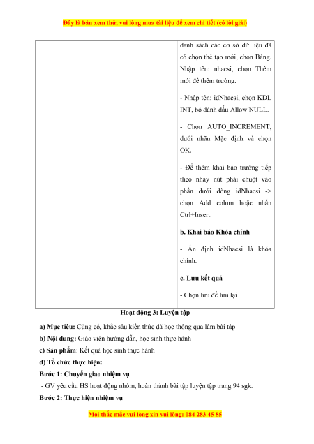 TÊN BÀI DẠY: THỰC HÀNH TẠO LẬP CƠ SỞ DỮ LIỆU VÀ CÁC BẢNG