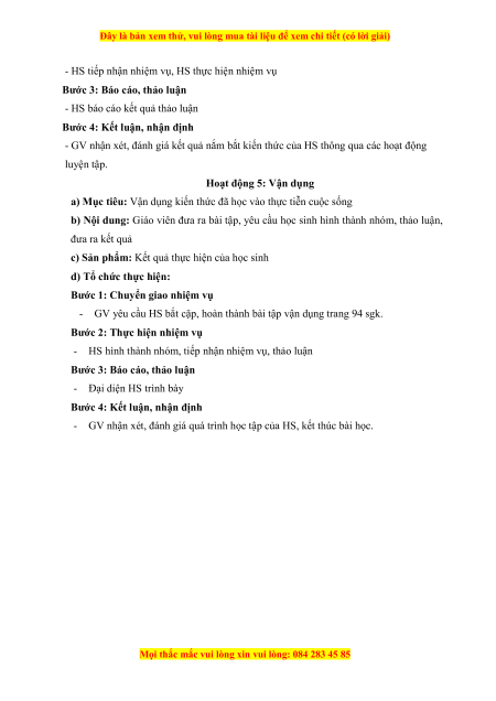 - GV yêu cầu HS hoạt động nhóm, hoàn thành bài tập luyện tập trang 94 sgk.