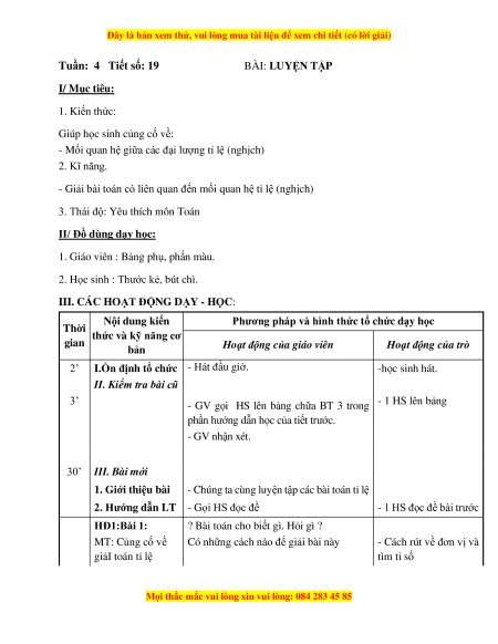 Tuần: 4 Tiết số: 19 BÀI: LUYỆN TẬP I/ Mục tiêu: 1. Kiến thức: